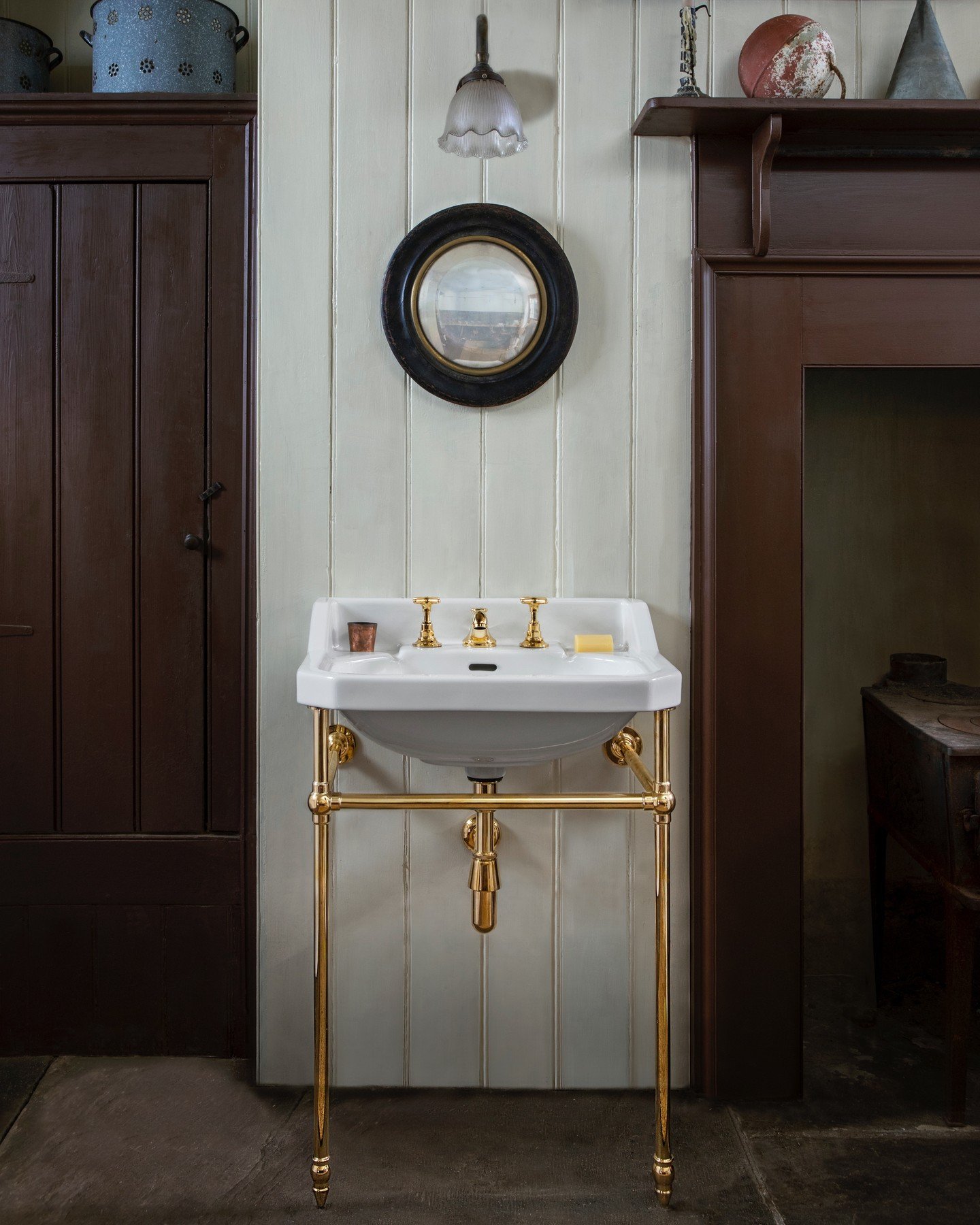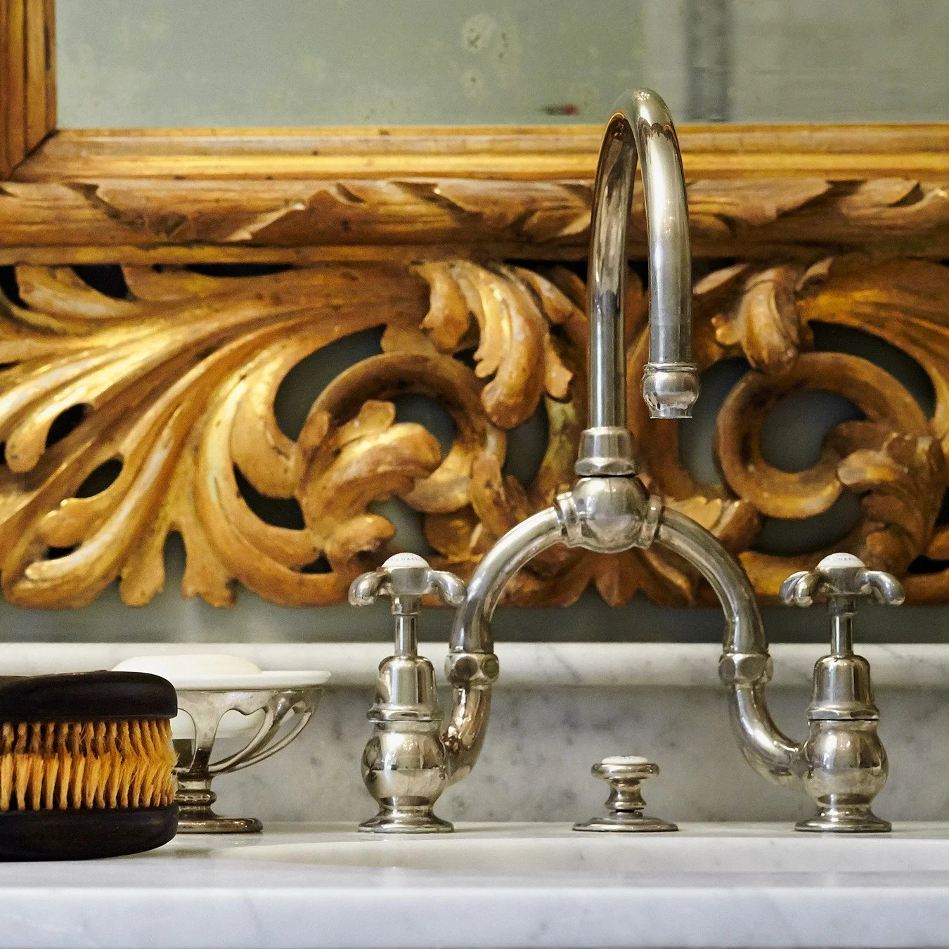 1900 Classic brassware, enriched with a natural patina, bathed in the dappled light of an Italian morning.